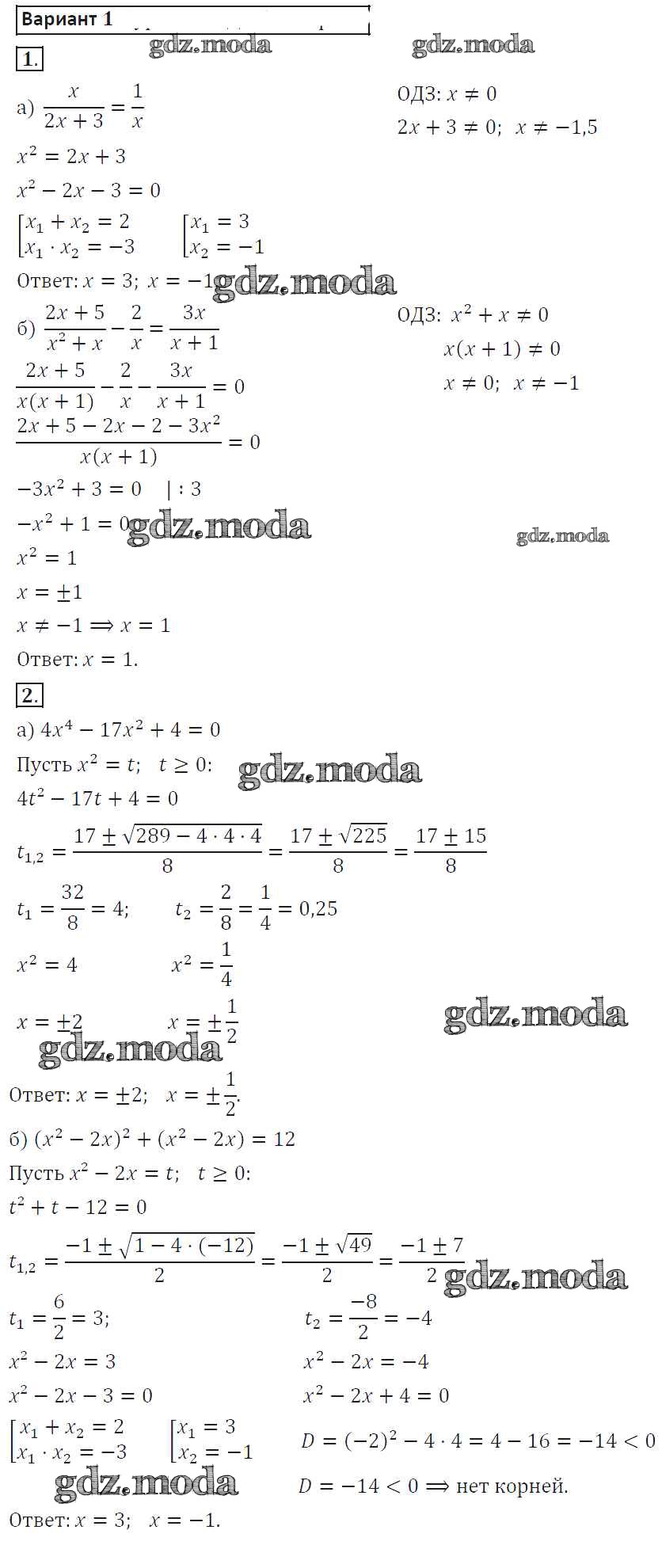 ГДЗ решение к заданию № 1 Алгебра 8 класс самостоятельные работы Александрова Л.А. Мнемозина 2016 ФГОС бесплатно на гдз.мода!