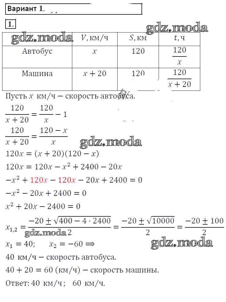 ОТВЕТ на задание № 1 Самостоятельные работы по Алгебре 8 класс Александрова