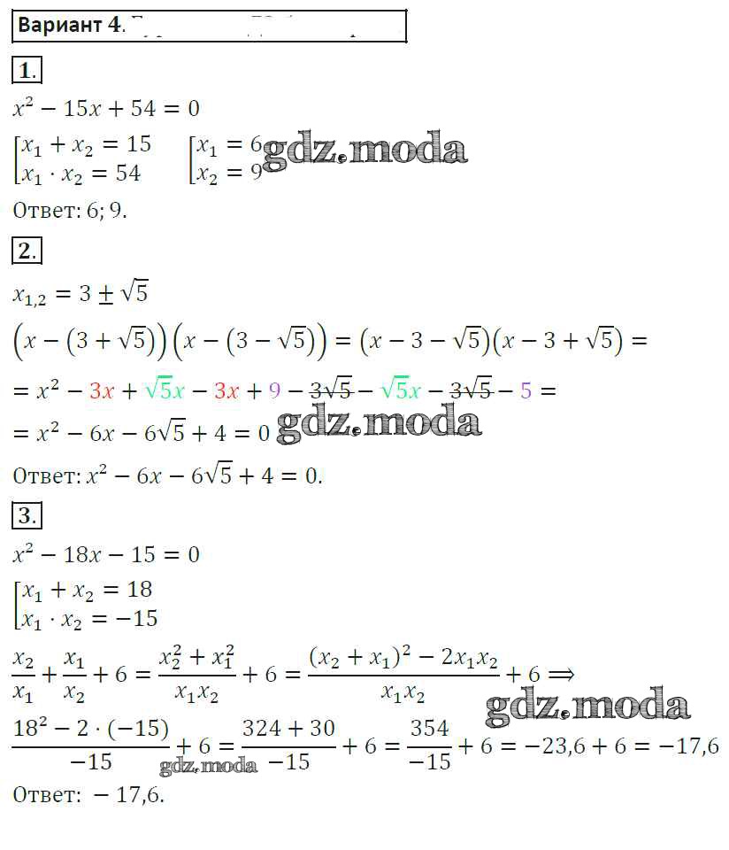 ОТВЕТ на задание № 4 Самостоятельные работы по Алгебре 8 класс Александрова