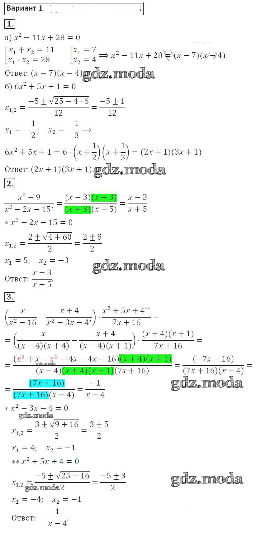 ГДЗ решение к заданию № 1 Алгебра 8 класс самостоятельные работы Александрова Л.А. Мнемозина 2016 ФГОС бесплатно на гдз.мода!