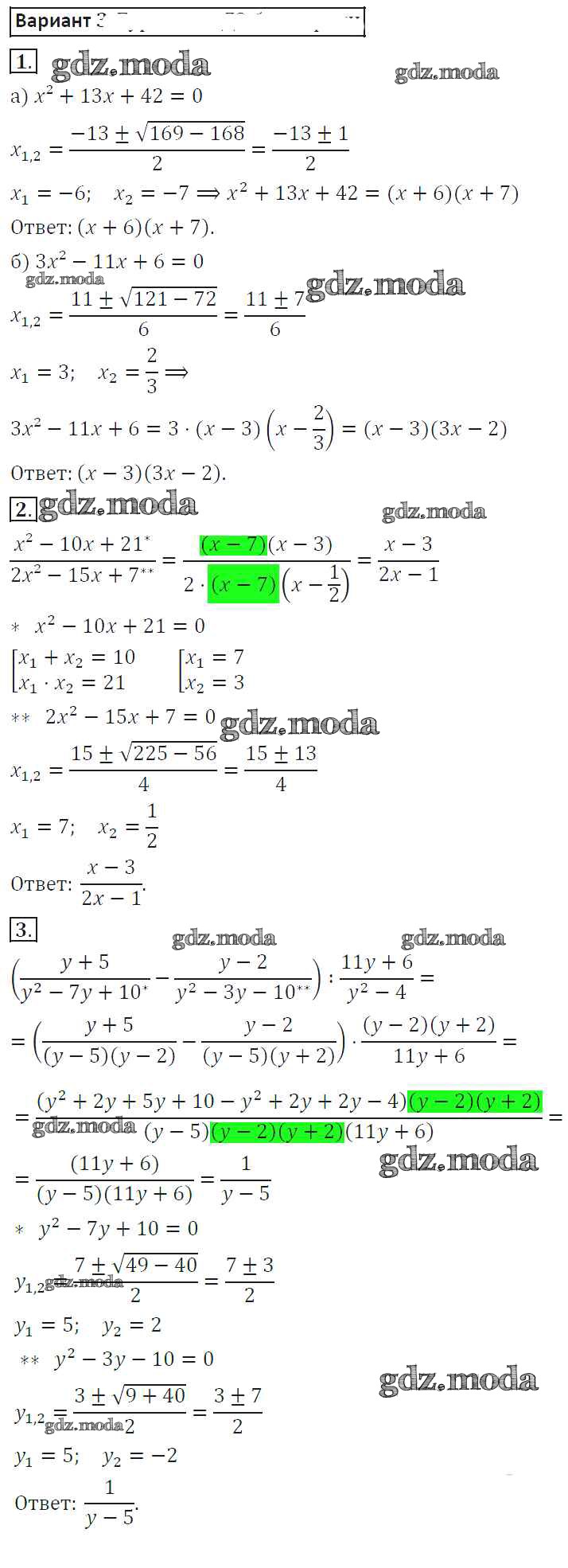 ГДЗ решение к заданию № 3 Алгебра 8 класс самостоятельные работы Александрова Л.А. Мнемозина 2016 ФГОС бесплатно на гдз.мода!