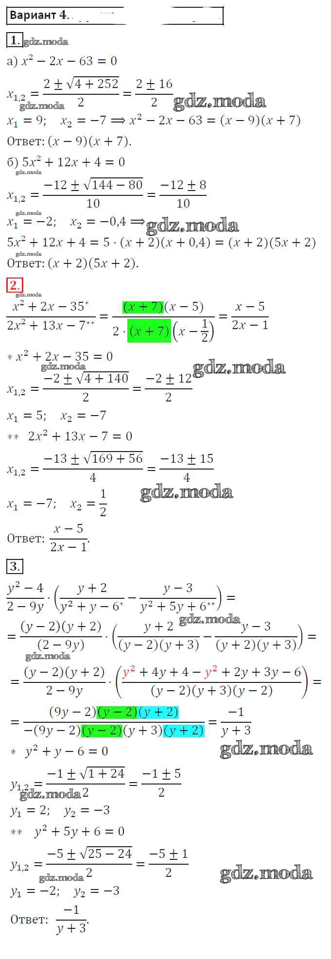 ГДЗ решение к заданию № 4 Алгебра 8 класс самостоятельные работы Александрова Л.А. Мнемозина 2016 ФГОС бесплатно на гдз.мода!