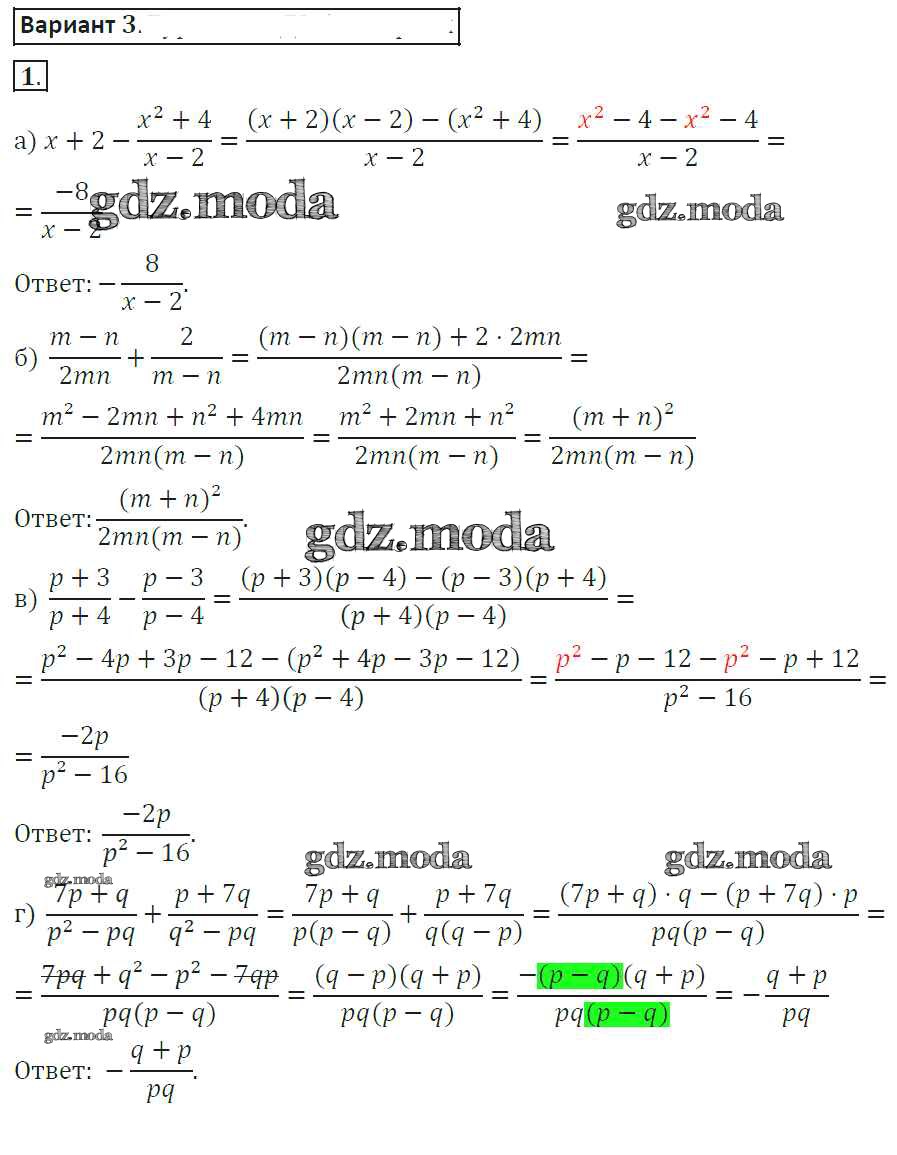 ГДЗ решение к заданию № 3 Алгебра 8 класс самостоятельные работы Александрова Л.А. Мнемозина 2016 ФГОС бесплатно на гдз.мода!