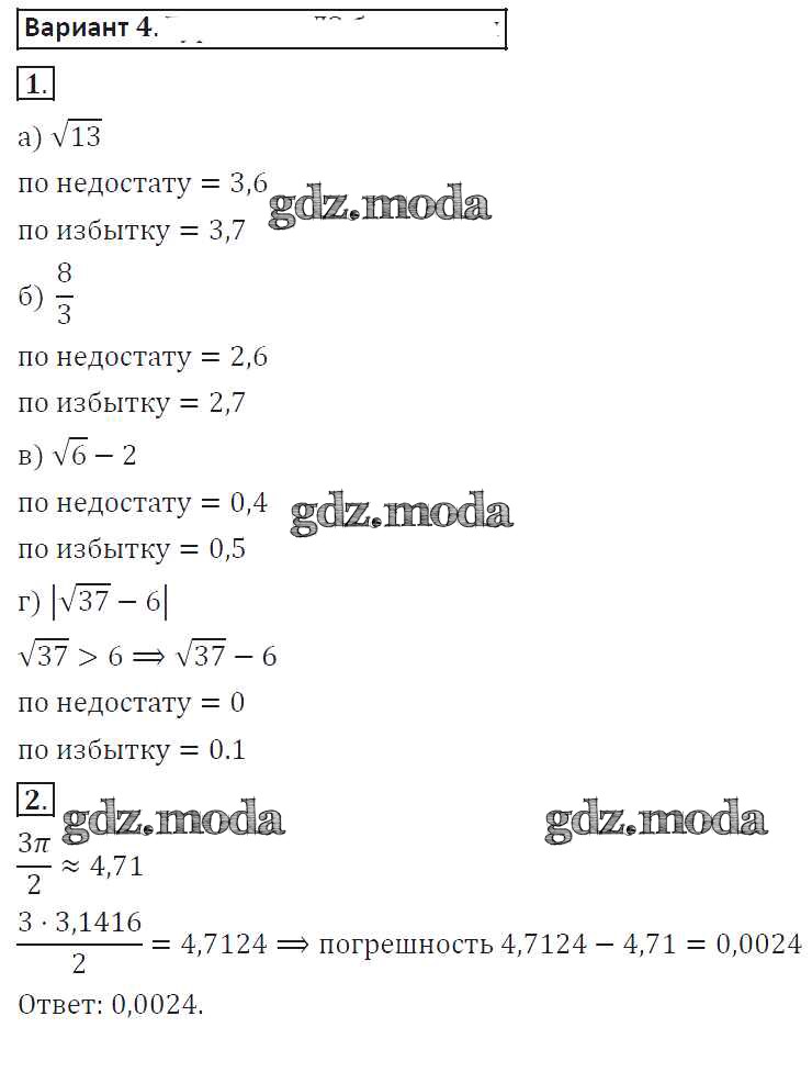 ОТВЕТ на задание № 4 Самостоятельные работы по Алгебре 8 класс Александрова