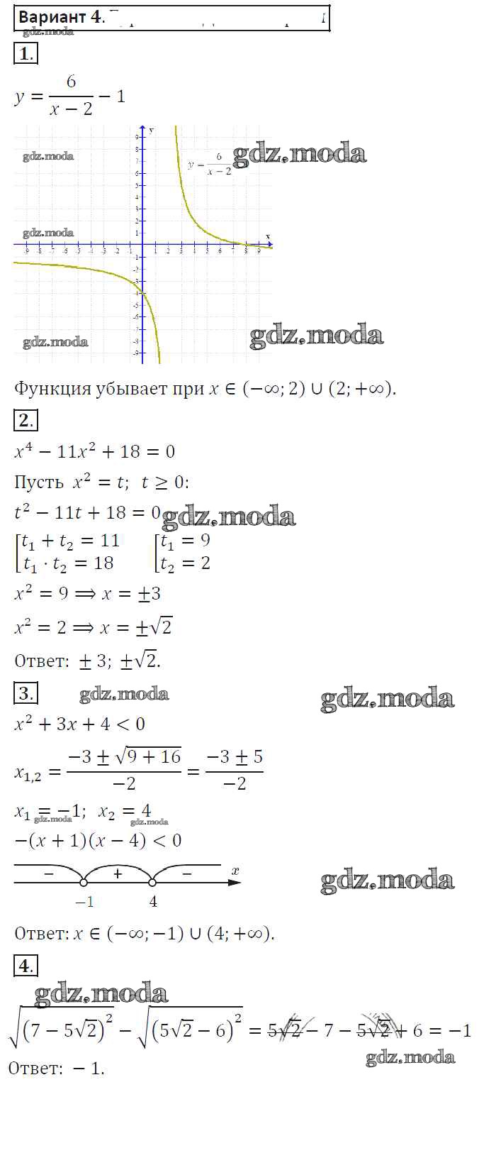 ГДЗ решение к заданию № 4 Алгебра 8 класс самостоятельные работы Александрова Л.А. Мнемозина 2016 ФГОС бесплатно на гдз.мода!