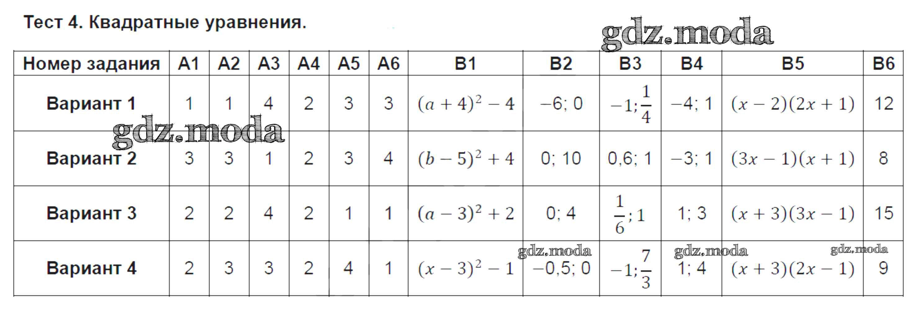 ГДЗ решение к заданию № 4 Алгебра 8 класс тематические тесты Чулков П.В. Просвещение 2012 ФГОС бесплатно на гдз.мода!