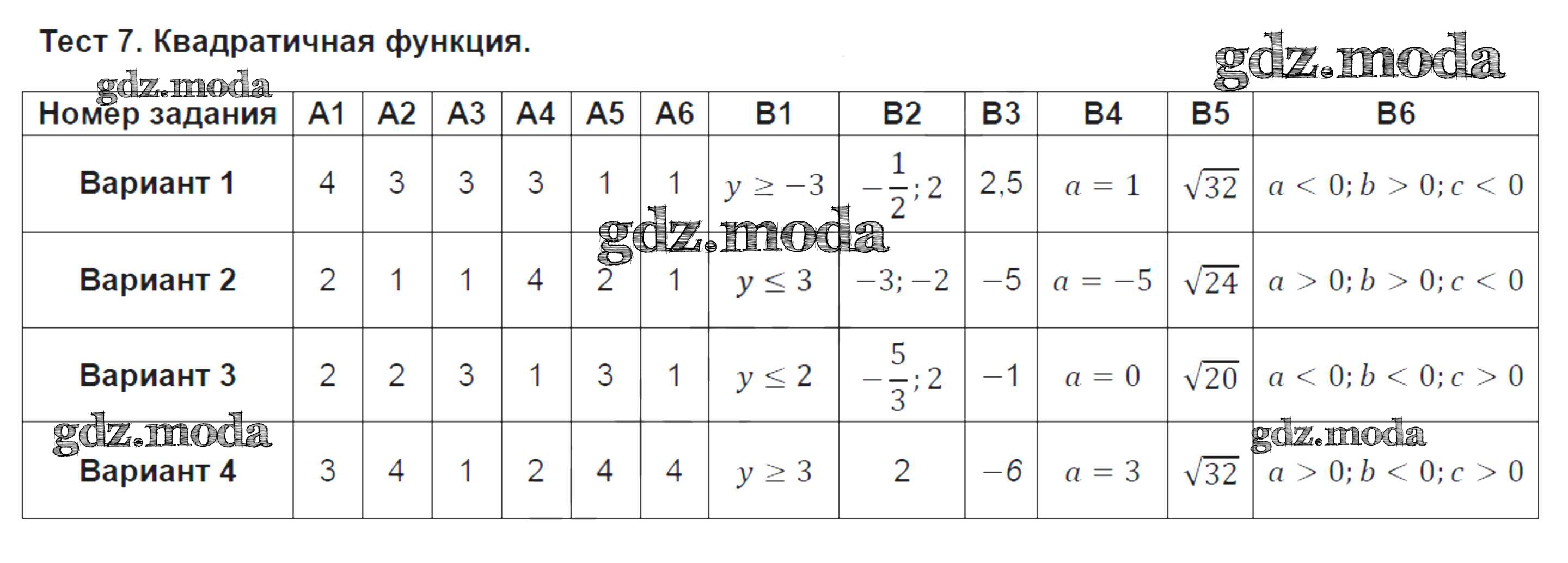 ГДЗ решение к заданию № 7 Алгебра 8 класс тематические тесты Чулков П.В. Просвещение 2012 ФГОС бесплатно на гдз.мода!
