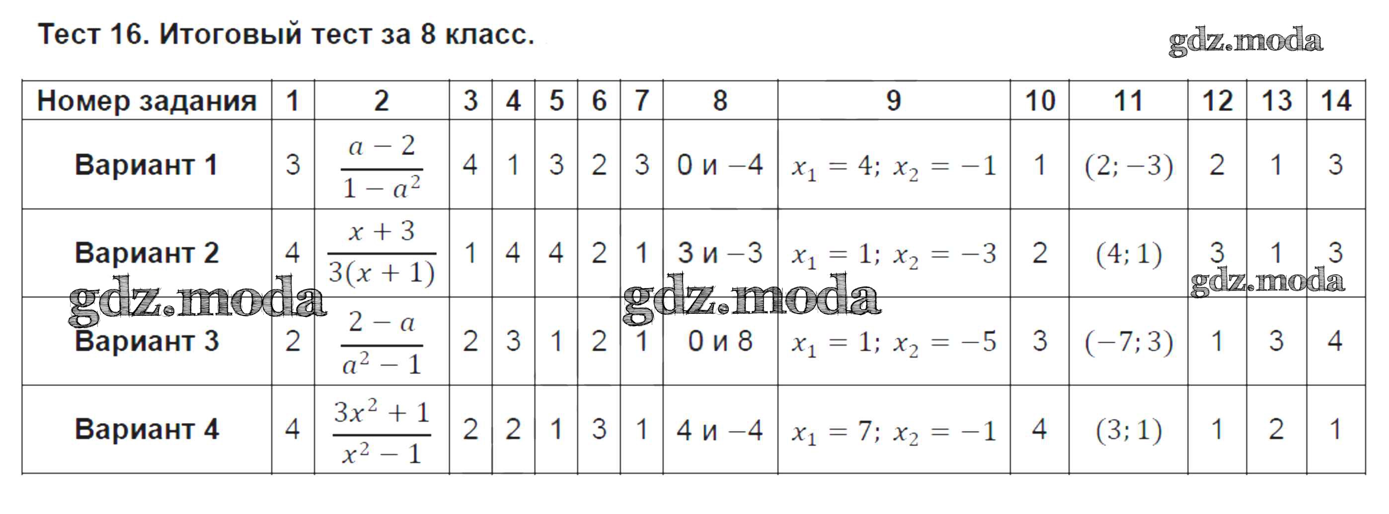 ГДЗ решение к заданию № 16 Алгебра 8 класс тематические тесты Кузнецова Л.В. Просвещение 2018 Базовый уровень ФГОС бесплатно на гдз.мода!