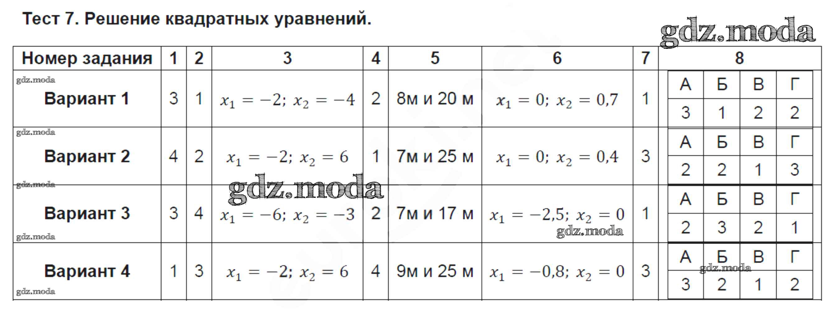 ГДЗ решение к заданию № 7 Алгебра 8 класс тематические тесты Кузнецова Л.В. Просвещение 2018 Базовый уровень ФГОС бесплатно на гдз.мода!