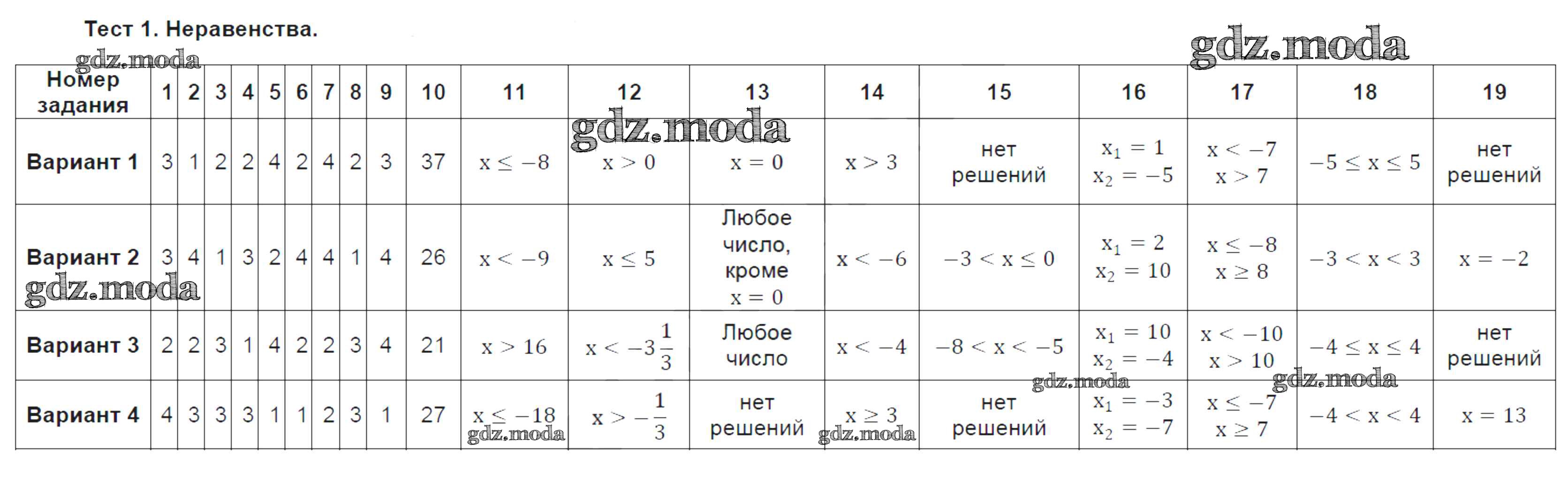 ГДЗ решение к заданию № 1 Алгебра 8 класс тематические тесты Ткачёва М.В. Просвещение 2018 ФГОС бесплатно на гдз.мода!