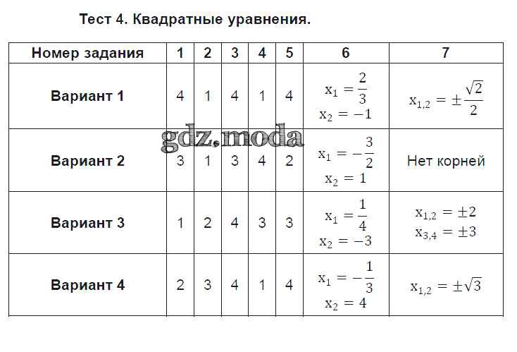 ГДЗ решение к заданию № 4 Алгебра 8 класс тематические тесты Ткачёва М.В. Просвещение 2018 ФГОС бесплатно на гдз.мода!