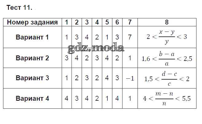 ОТВЕТ на задание № 11 Тесты по Алгебре 8 класс Глазков УМК