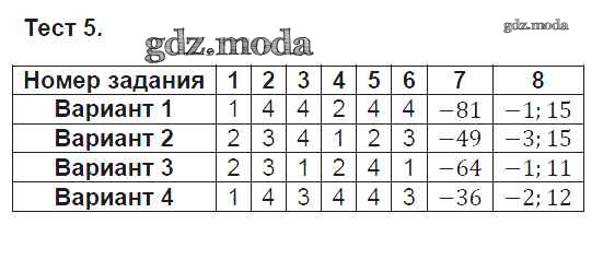 ОТВЕТ на задание № 5 Тесты по Алгебре 8 класс Глазков УМК
