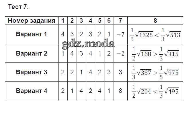 ГДЗ решение к заданию № 7 Алгебра 8 класс тесты Глазков Ю.А. (к уч. Макарычева) Экзамен 2018 ФГОС бесплатно на гдз.мода!
