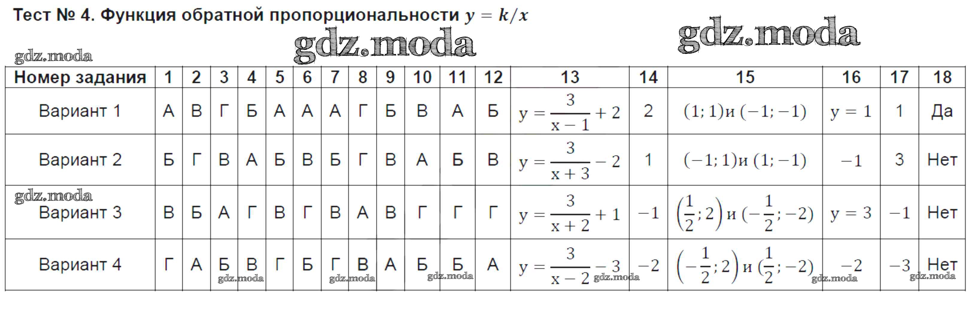 ГДЗ решение к заданию № 4 Алгебра 8 класс тесты Ключникова Е.М. (к уч. Мордковича) Экзамен 2011 ФГОС бесплатно на гдз.мода!