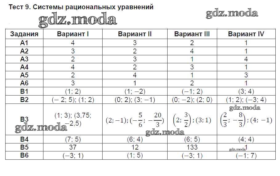 ГДЗ решение к заданию № 9 Алгебра 8 класс тесты Журавлев С.Г. (к уч. Никольского) Экзамен 2013 ФГОС бесплатно на гдз.мода!