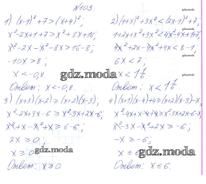 ГДЗ решение к заданию № 103 Алгебра 8 класс Алимов Ш.А. Просвещение 2014 бесплатно на гдз.мода!