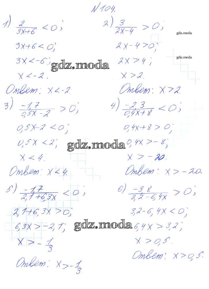 ГДЗ решение к заданию № 104 Алгебра 8 класс Алимов Ш.А. Просвещение 2014 бесплатно на гдз.мода!