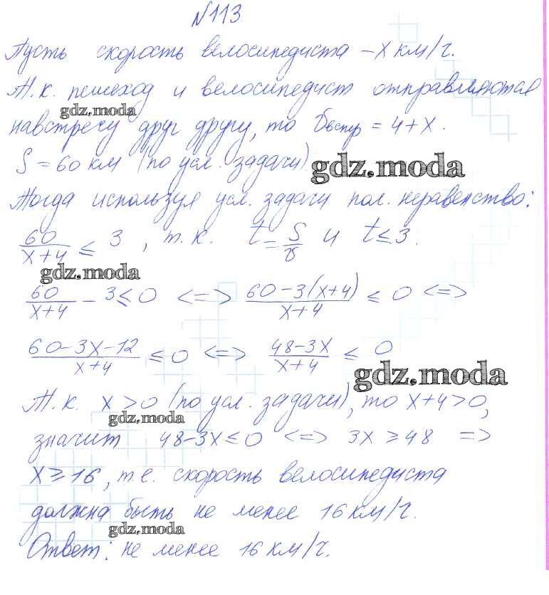 ГДЗ решение к заданию № 113 Алгебра 8 класс Алимов Ш.А. Просвещение 2014 бесплатно на гдз.мода!