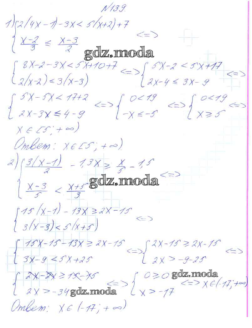 ГДЗ решение к заданию № 139 Алгебра 8 класс Алимов Ш.А. Просвещение 2014 бесплатно на гдз.мода!
