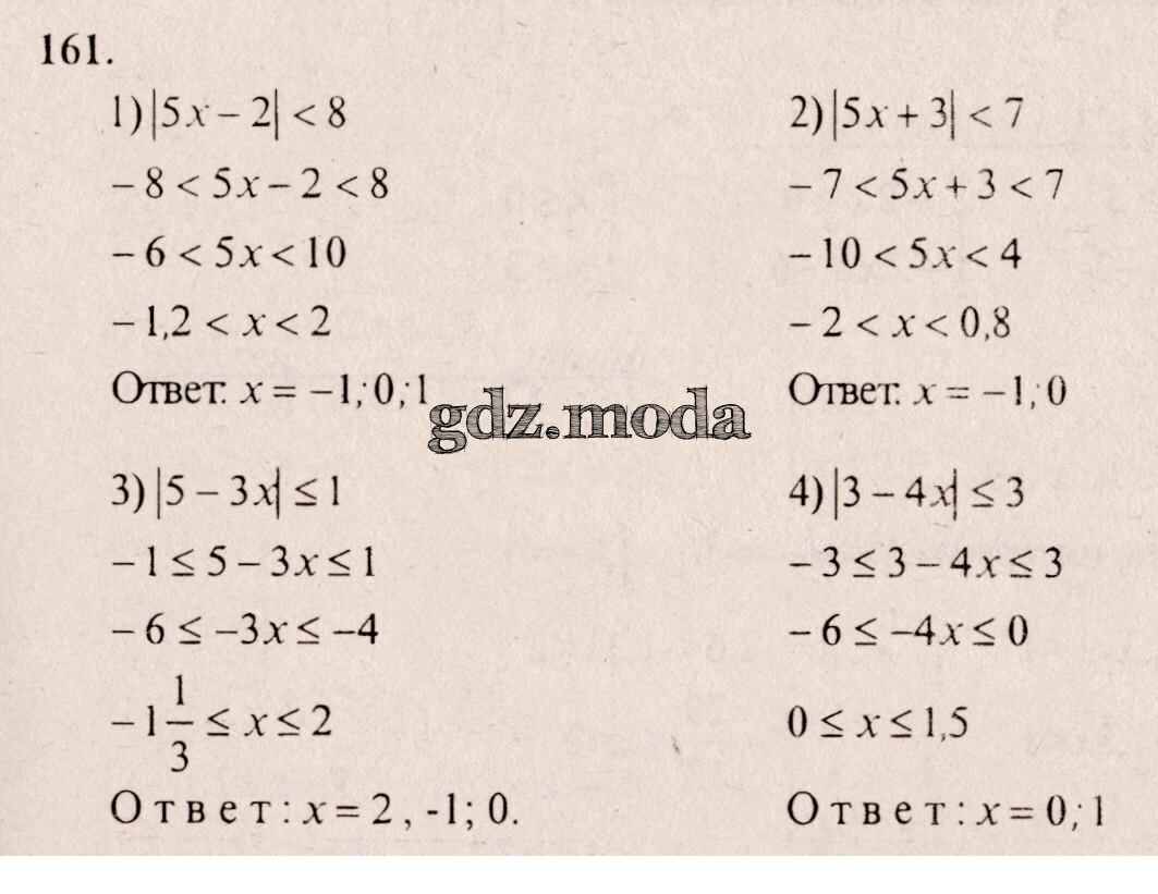 ОТВЕТ на задание № 161 Учебник по Алгебре 8 класс Алимов