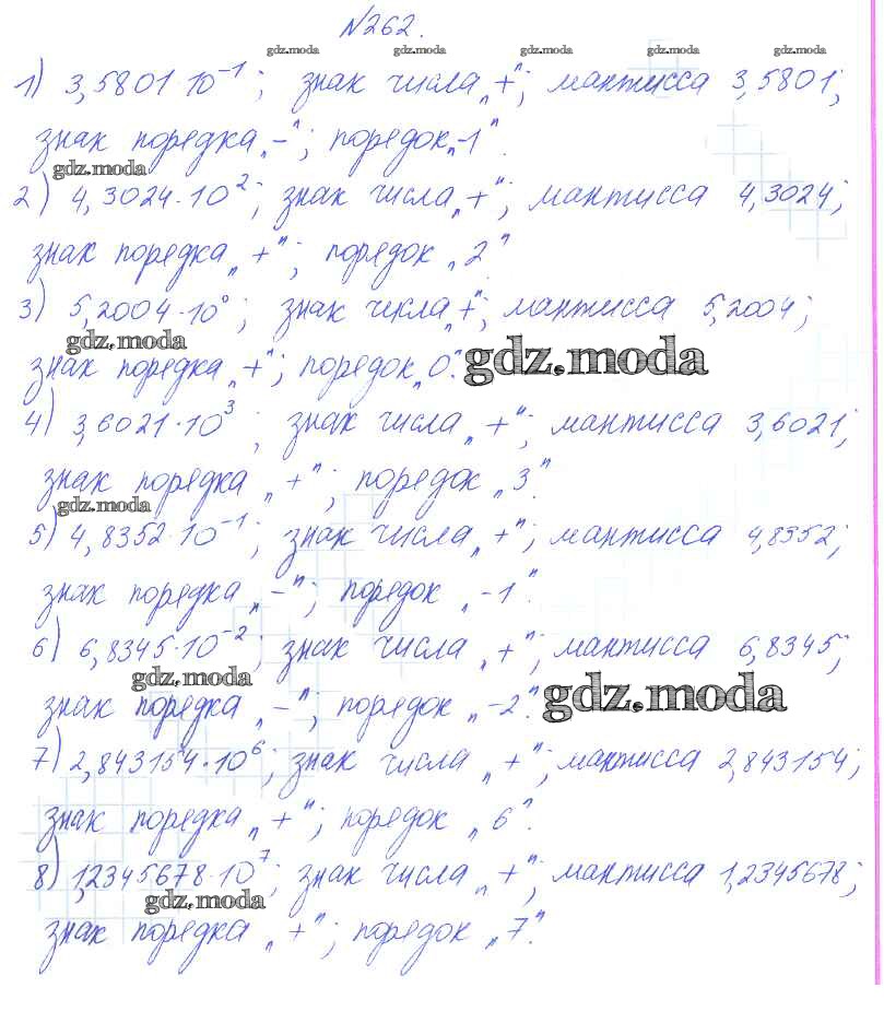 ОТВЕТ на задание № 262 Учебник по Алгебре 8 класс Алимов
