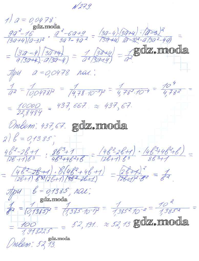 ГДЗ решение к заданию № 279 Алгебра 8 класс Алимов Ш.А. Просвещение 2014 бесплатно на гдз.мода!