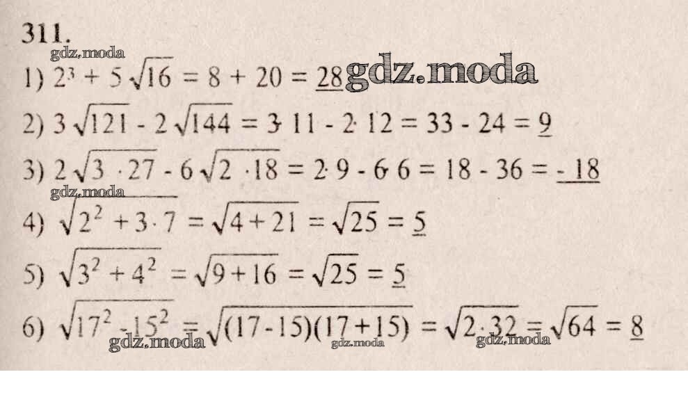 ГДЗ решение к заданию № 311 Алгебра 8 класс Алимов Ш.А. Просвещение 2014 бесплатно на гдз.мода!
