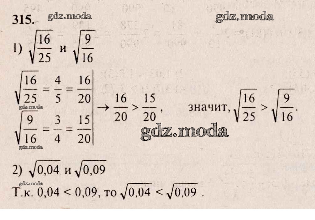 ГДЗ решение к заданию № 315 Алгебра 8 класс Алимов Ш.А. Просвещение 2014 бесплатно на гдз.мода!