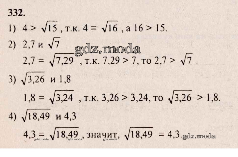 ГДЗ решение к заданию № 332 Алгебра 8 класс Алимов Ш.А. Просвещение 2014 бесплатно на гдз.мода!