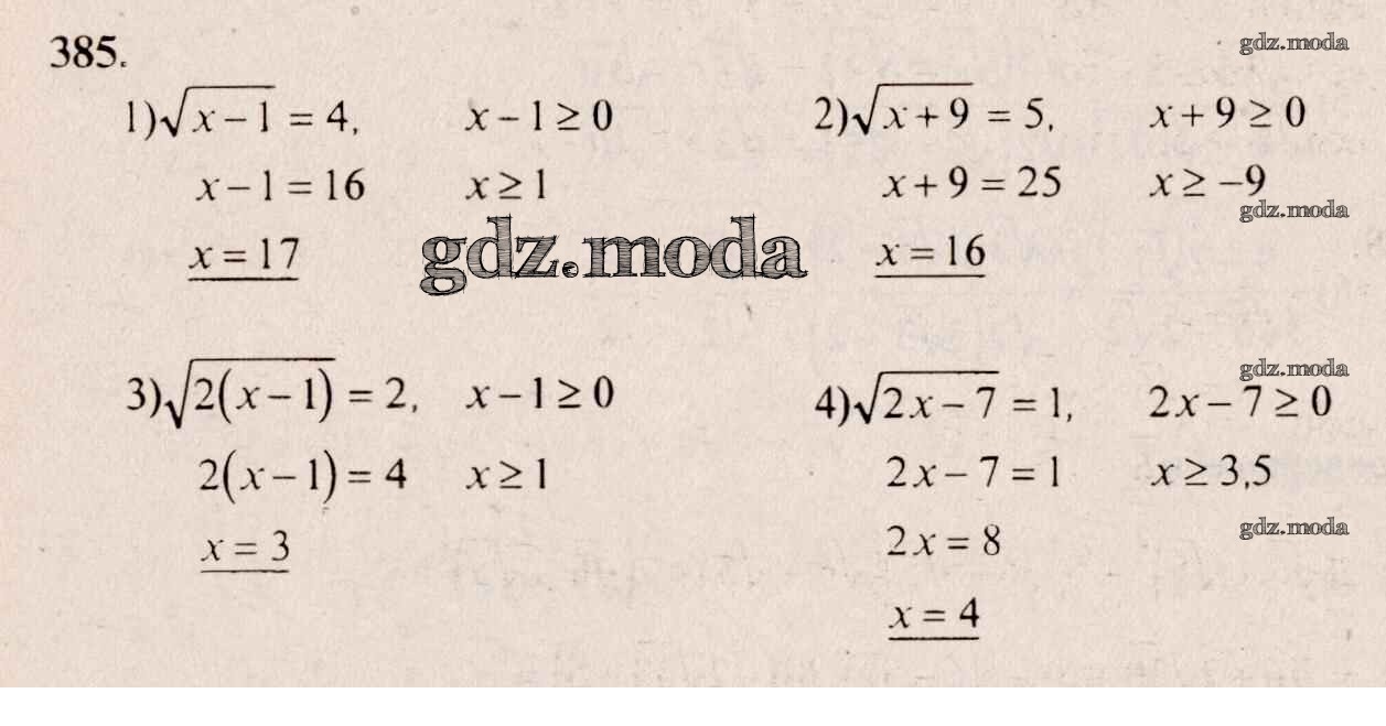 ГДЗ решение к заданию № 385 Алгебра 8 класс Алимов Ш.А. Просвещение 2014 бесплатно на гдз.мода!