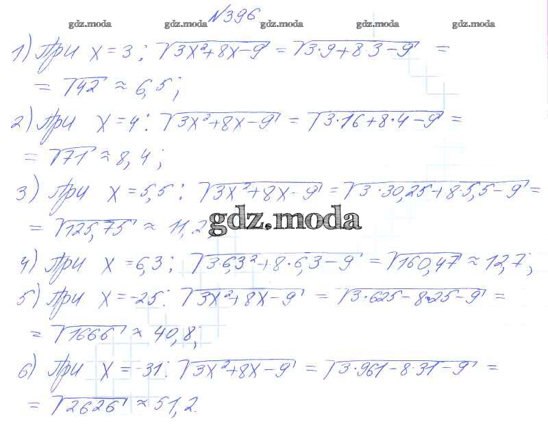 ГДЗ решение к заданию № 396 Алгебра 8 класс Алимов Ш.А. Просвещение 2014 бесплатно на гдз.мода!