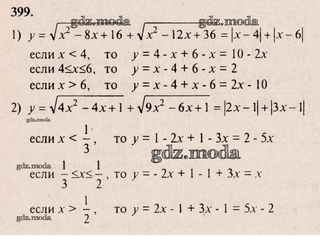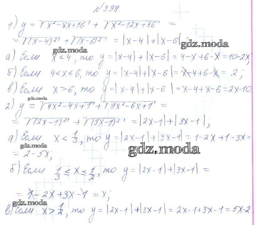 ГДЗ решение к заданию № 399 Алгебра 8 класс Алимов Ш.А. Просвещение 2014 бесплатно на гдз.мода!