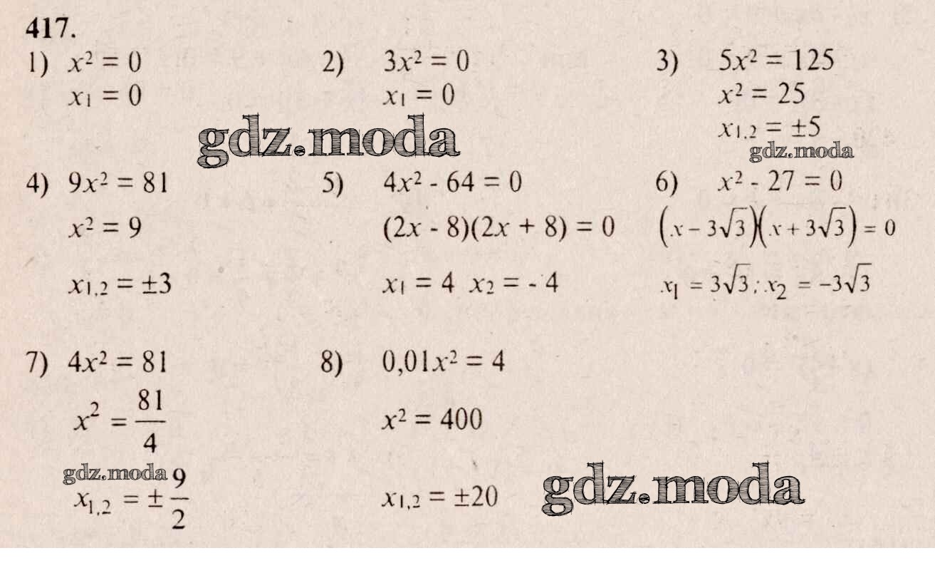 ГДЗ решение к заданию № 417 Алгебра 8 класс Алимов Ш.А. Просвещение 2014 бесплатно на гдз.мода!