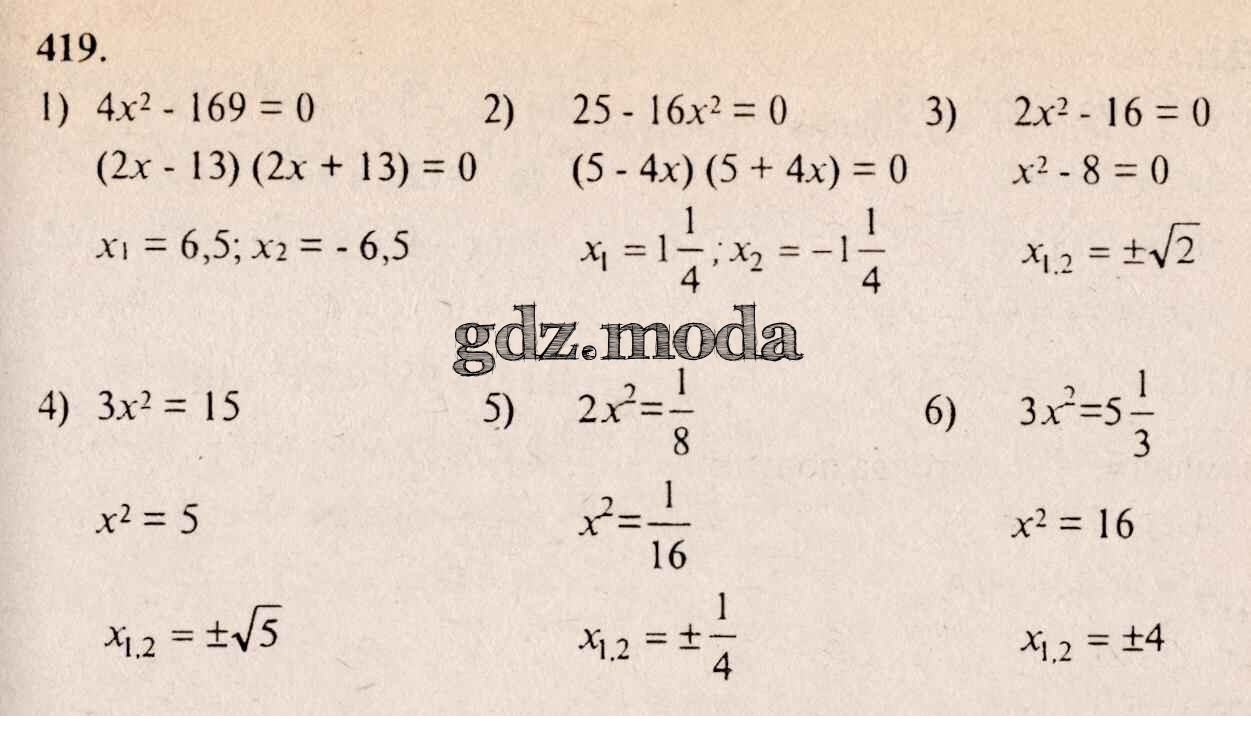 ГДЗ решение к заданию № 419 Алгебра 8 класс Алимов Ш.А. Просвещение 2014 бесплатно на гдз.мода!
