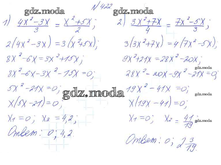 ОТВЕТ на задание № 422 Учебник по Алгебре 8 класс Алимов