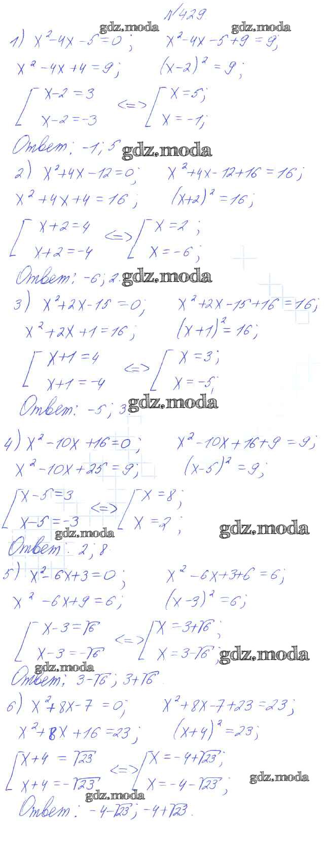 ГДЗ решение к заданию № 429 Алгебра 8 класс Алимов Ш.А. Просвещение 2014 бесплатно на гдз.мода!