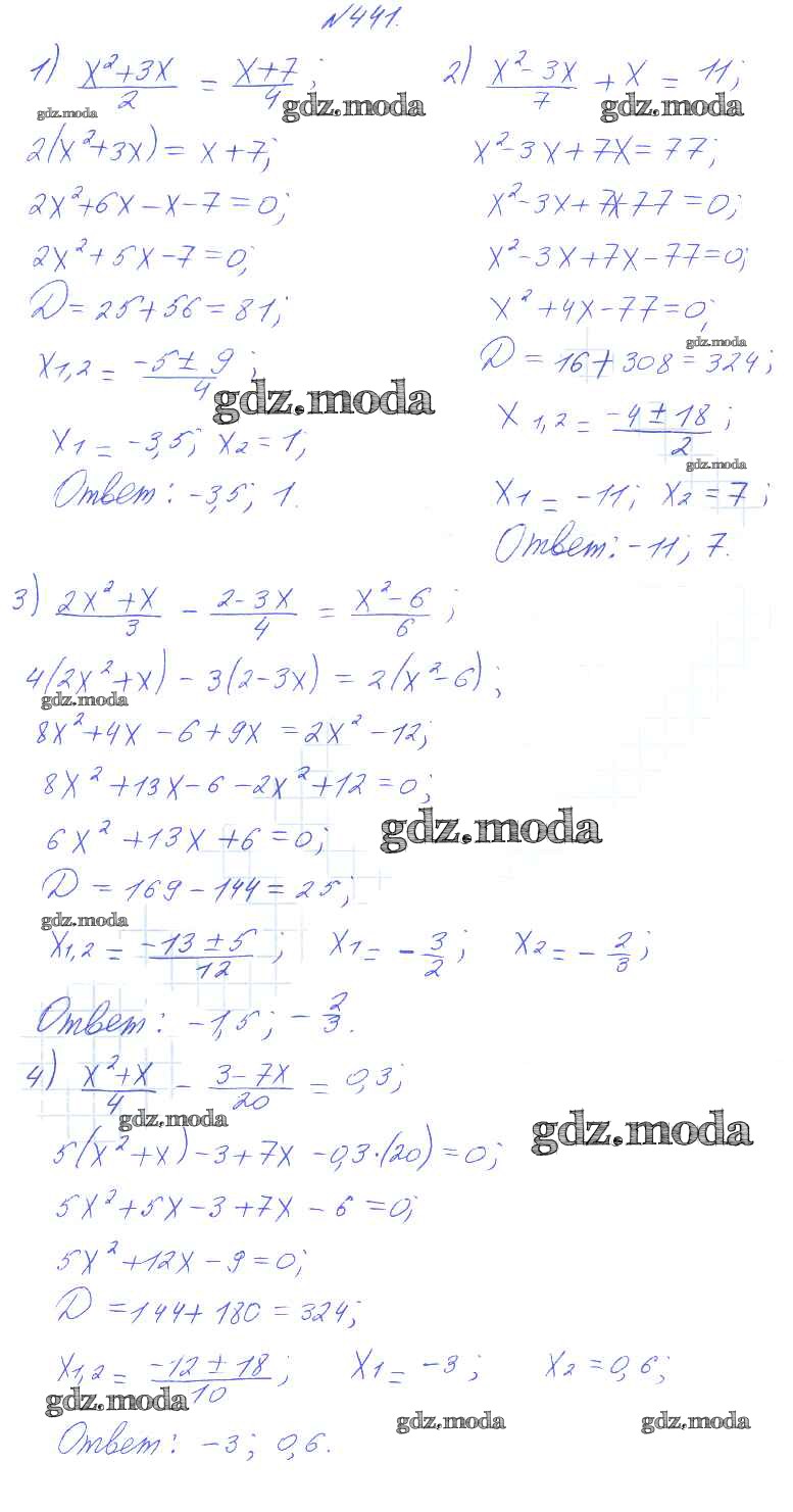 ГДЗ решение к заданию № 441 Алгебра 8 класс Алимов Ш.А. Просвещение 2014 бесплатно на гдз.мода!