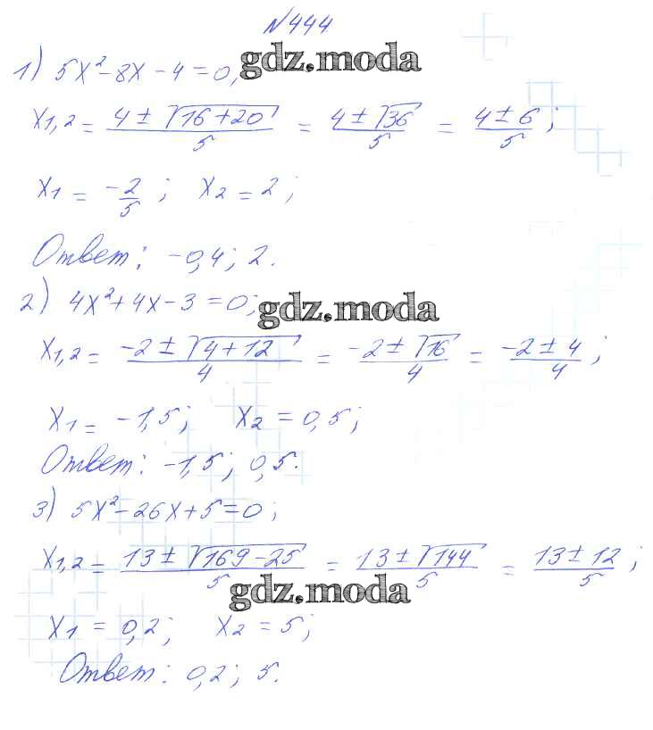 ГДЗ решение к заданию № 444 Алгебра 8 класс Алимов Ш.А. Просвещение 2014 бесплатно на гдз.мода!