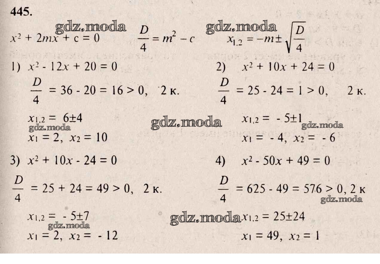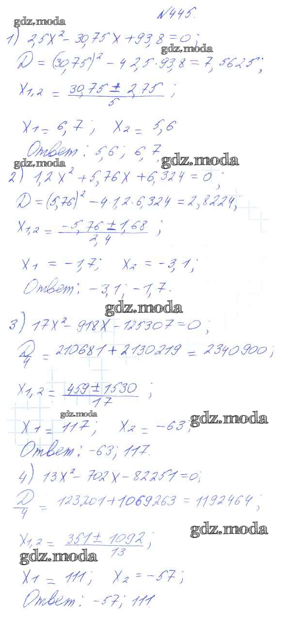 ГДЗ решение к заданию № 445 Алгебра 8 класс Алимов Ш.А. Просвещение 2014 бесплатно на гдз.мода!