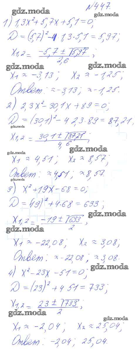ГДЗ решение к заданию № 447 Алгебра 8 класс Алимов Ш.А. Просвещение 2014 бесплатно на гдз.мода!