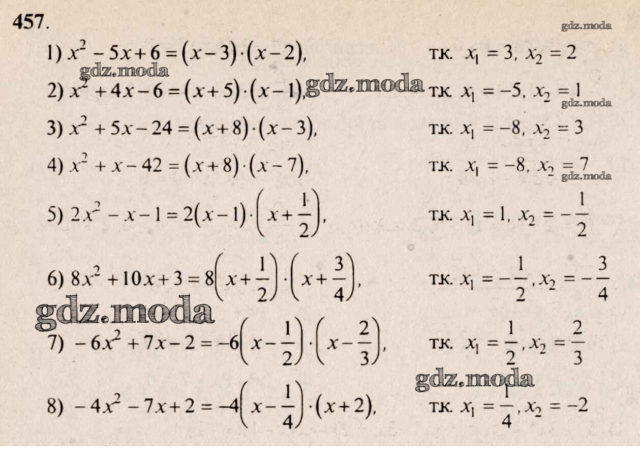 ГДЗ решение к заданию № 457 Алгебра 8 класс Алимов Ш.А. Просвещение 2014 бесплатно на гдз.мода!