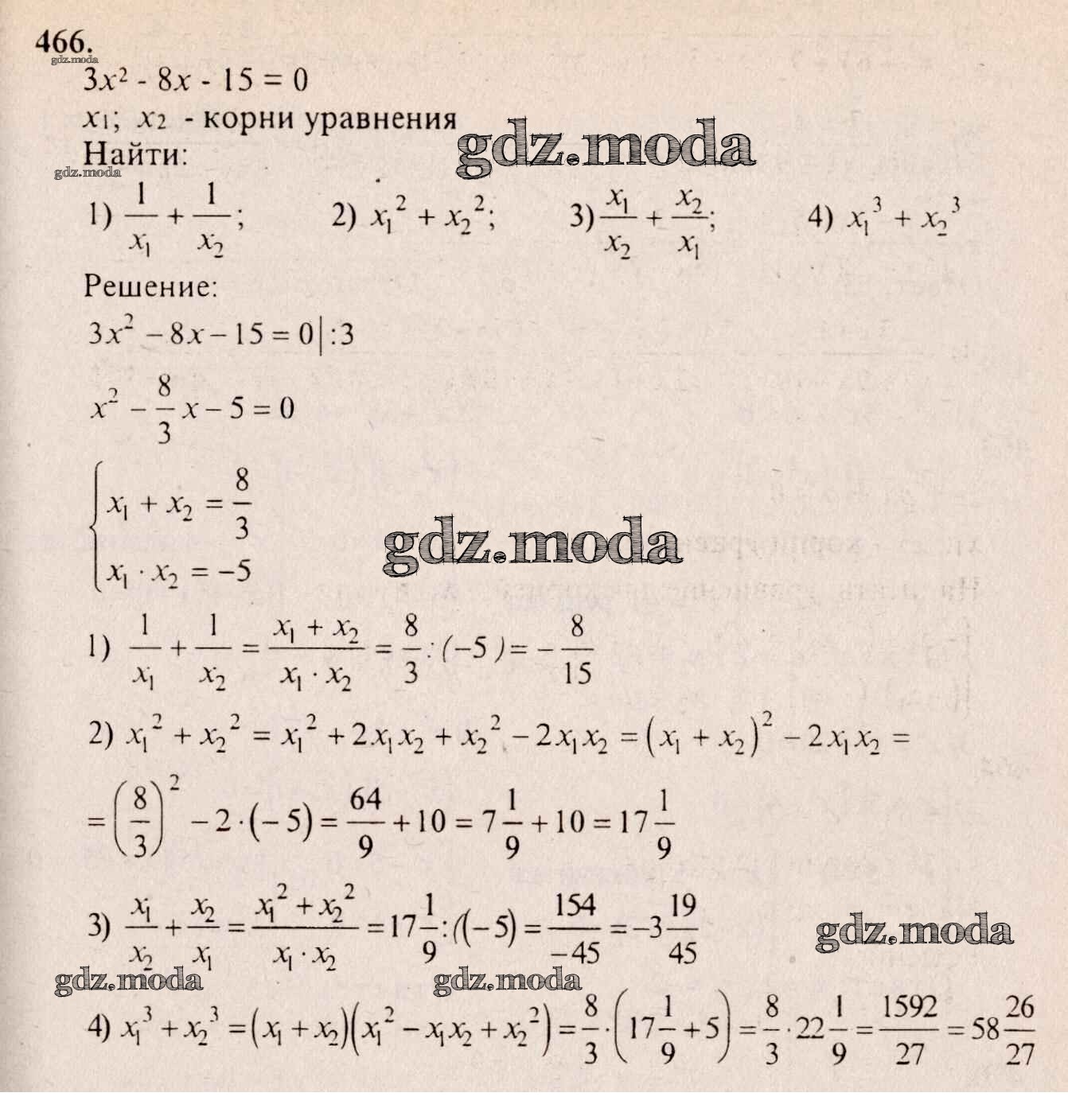 ГДЗ решение к заданию № 466 Алгебра 8 класс Алимов Ш.А. Просвещение 2014 бесплатно на гдз.мода!