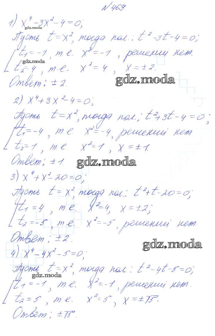 ГДЗ решение к заданию № 469 Алгебра 8 класс Алимов Ш.А. Просвещение 2014 бесплатно на гдз.мода!
