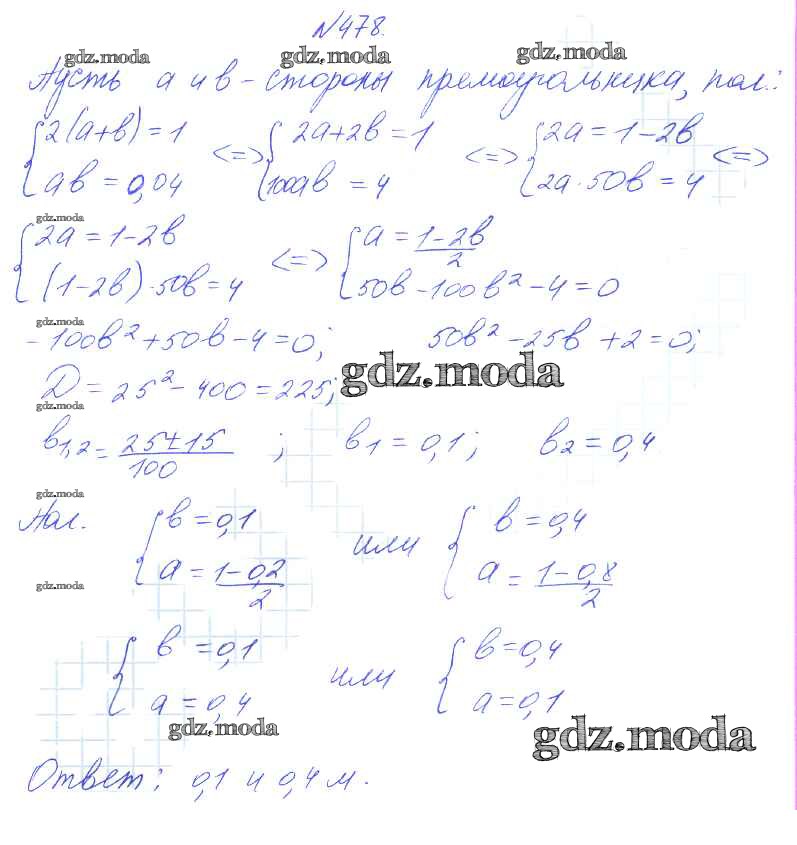 ГДЗ решение к заданию № 478 Алгебра 8 класс Алимов Ш.А. Просвещение 2014 бесплатно на гдз.мода!