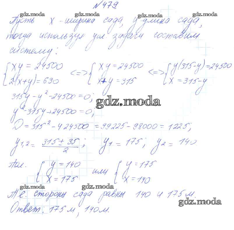 ГДЗ решение к заданию № 479 Алгебра 8 класс Алимов Ш.А. Просвещение 2014 бесплатно на гдз.мода!
