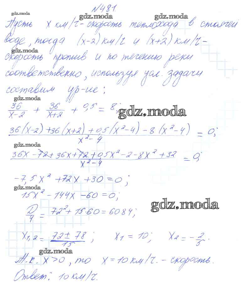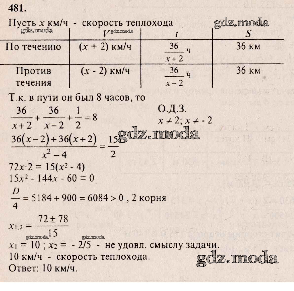 ГДЗ решение к заданию № 481 Алгебра 8 класс Алимов Ш.А. Просвещение 2014 бесплатно на гдз.мода!