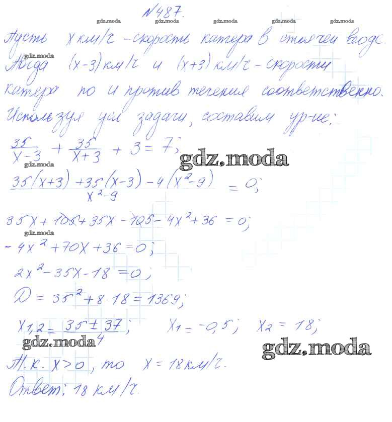 ГДЗ решение к заданию № 487 Алгебра 8 класс Алимов Ш.А. Просвещение 2014 бесплатно на гдз.мода!