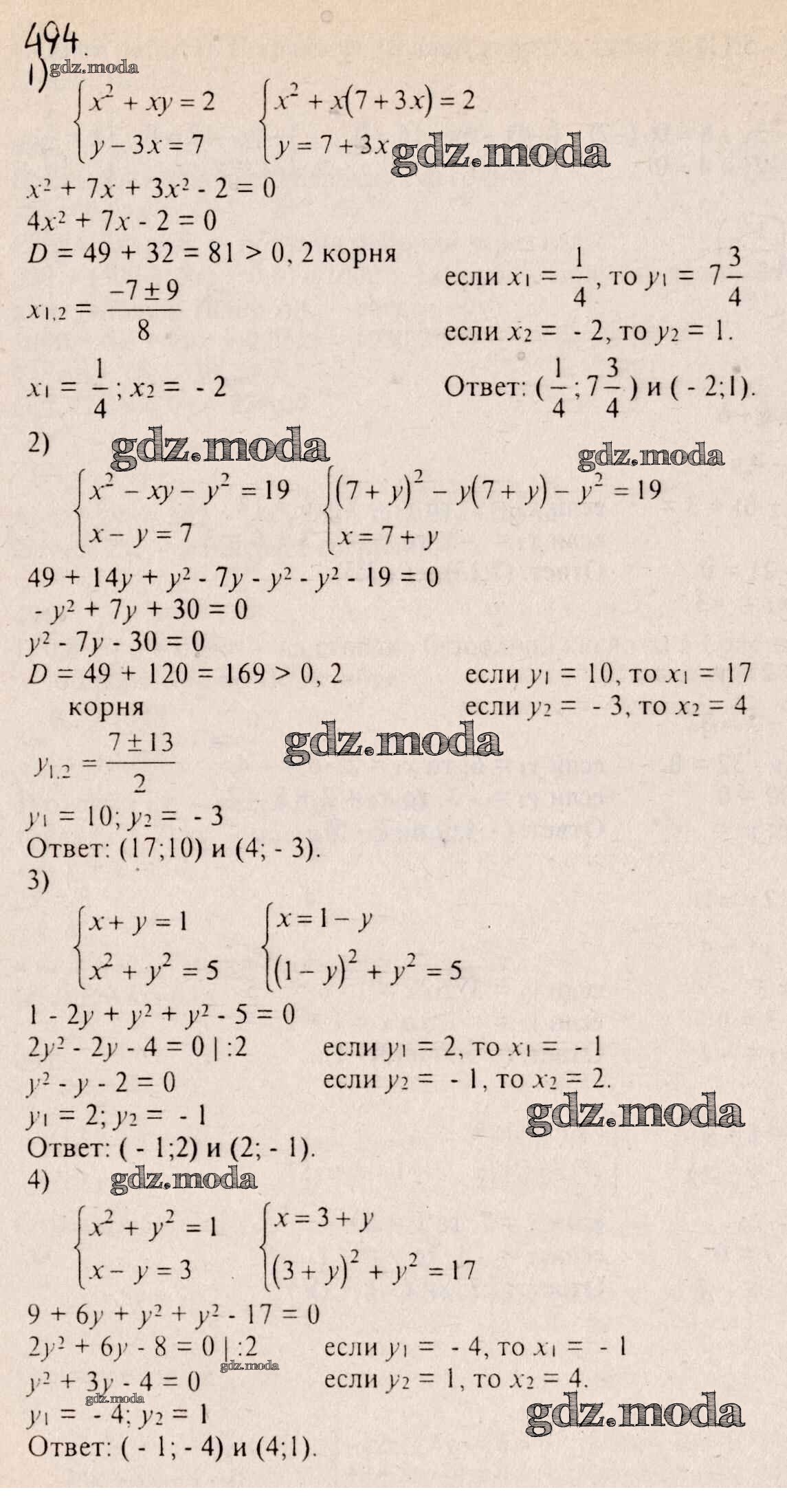 ГДЗ решение к заданию № 494 Алгебра 8 класс Алимов Ш.А. Просвещение 2014 бесплатно на гдз.мода!