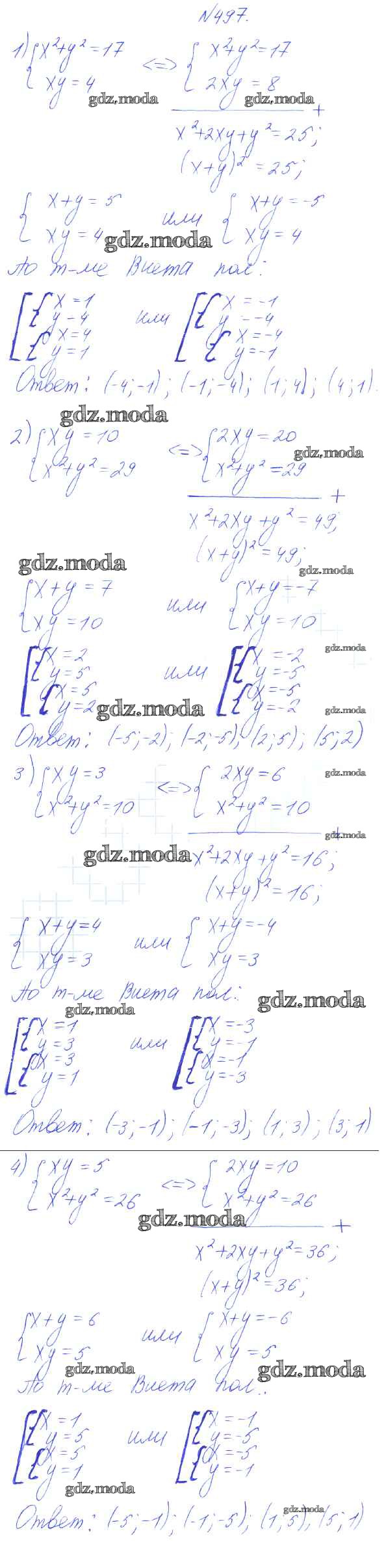 ГДЗ решение к заданию № 497 Алгебра 8 класс Алимов Ш.А. Просвещение 2014 бесплатно на гдз.мода!